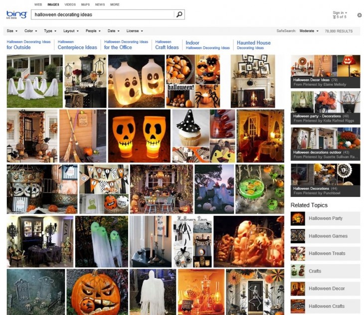Here’s what happens on Bing Image Search when your query is “Halloween decorating ideas“: